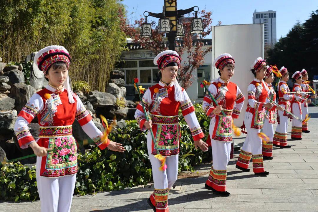刚下大巴,队员们就被大理赛区的热情包围了。身着绚丽民族服饰的姑娘们,手持霸王鞭翩翩起舞,清脆的鞭响与欢快的节奏交织成灵动的乐章;另一边,八角鼓的鼓点轻快,小伙子们面带灿烂笑容,用这场极具大理特色的欢迎仪式,迎接丽江队的到来。